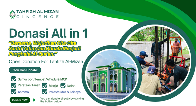 Wakaf All in 1 (Sumur Bor, Tempat Wudhu. MCK, Mesjid, Asrama, Kelas dan Infarrstruktur Pesantren Tahfizh Almizan Cingenge)